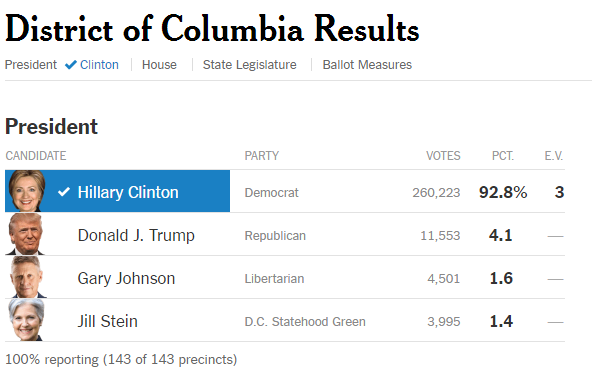Even block voting zones like The Bronx gave Trump 9.6%, & in Baltimore 10.9% & greater Boston 16.5%. I suppose if you were GOP in DC, you might ask, why bother voting? Better to go to the bar for happy hour.